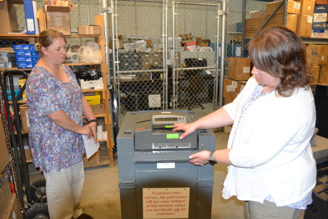 The county elections office currently has 54 M-100 optical scanning vote machines and about 50 Automark touch-screen machines, Amos said. All the equipment, she said, was acquired using Help American Vote Act money in 2006.