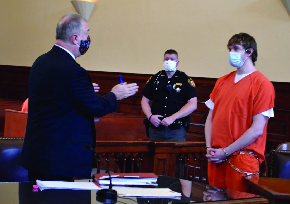 Photo by Michele Newbanks Washington County Public Defender Ray Smith explains the Reagan Tokes Act to his client, Christopher Walker, after Walker was sentenced to six years in prison Friday morning.