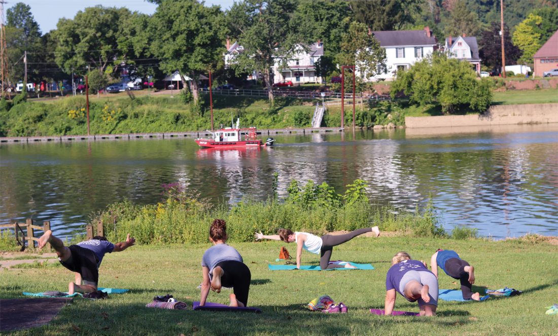 Photo by James Dobbs An introductory yoga class was taught Friday morning by Stephanie Biehl of Reflection Life Studio. The morning’s yoga was peaceful as a calm breeze flowed over the Marietta river.