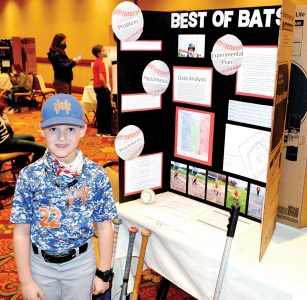 One of the exhibits was by Jace Riffle, a Vienna Elementary School student, about how baseballs fly on average from three kinds of baseball bats. Riffle said of his exhibit, “to test the wood, composite, and aluminum alloy (bats) to see which one had the highest average.”