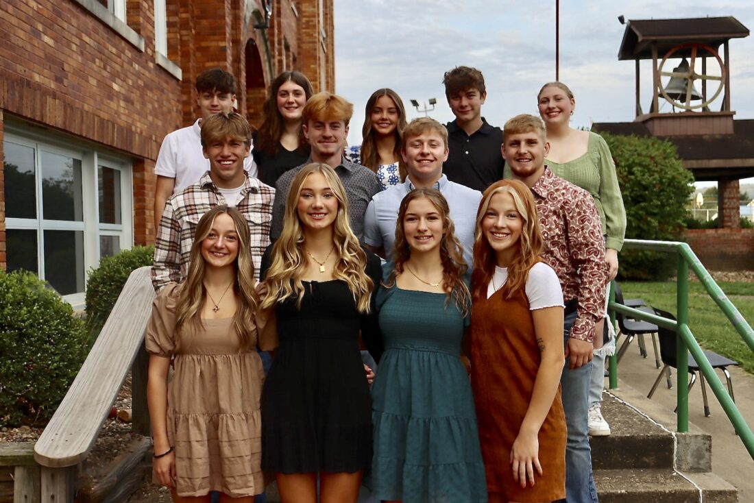 (Photo provided) The Waterford Homecoming Court includes: front row from left, Ryleigh Rutter, Kendall Sury, Maya Wilson and Hadley Offenberger; middle row from left, Josiah Ware, Jared Heiss, Zavier Heiss, and Colten Jones; and back row from left, Tim Horgas, Ella Schweikert, Evie Pennock, Maddox Antill and Eva Reed.