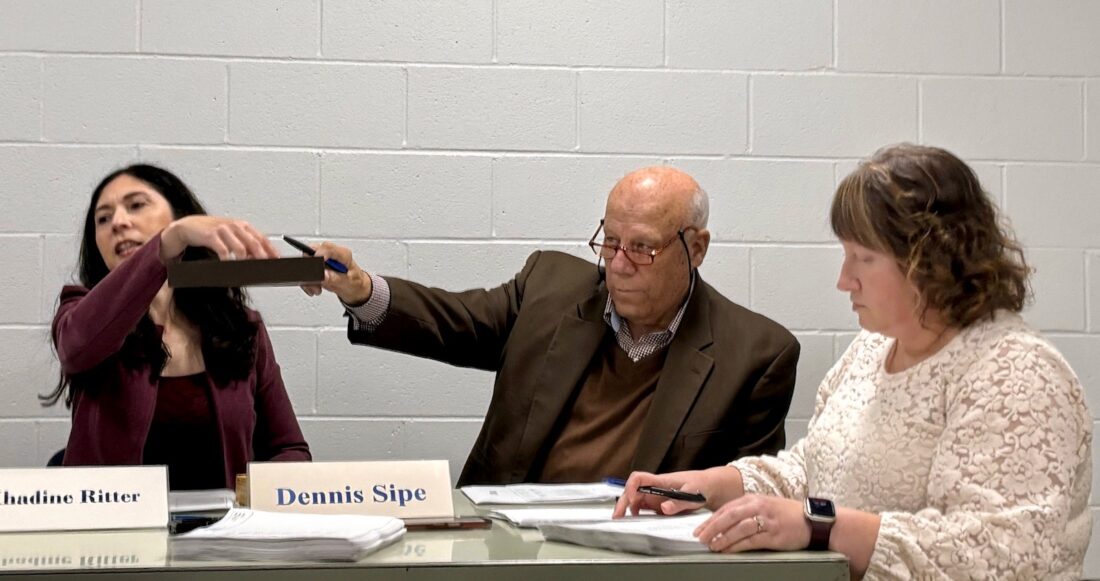 (Photo by Michelle Dillon) Washington County Board of Election member Dennis Sipe, center, holds a box Nov. 12 as Board of Election Member Khadine Ritter, left, randomly chooses a precinct for the election audit, while Washington County Board of Elections Director Mandi Amos, right, watches. The board held the audit and conducted a recount for a New Matamoras Sunday liquor sales question Wednesday.