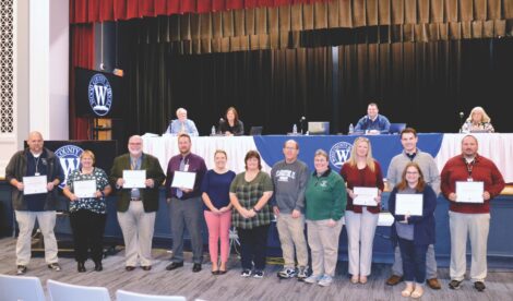 (Photo by Douglass Huxley) Representatives from middle and high schools in Wood County were recognized Tuesday night by the Wood County Board of Education for their achievements on the West Virginia Balanced Scorecard. Information for the Scorecard can be found at www.mywvschool.org.