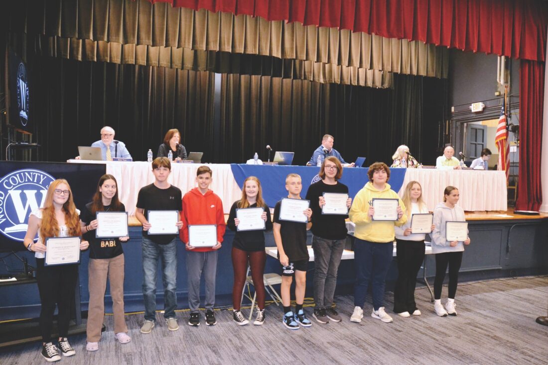 (Photo by Douglass Huxley) Students from Edison Middle School were recognized Tuesday night by the Wood County Board of Education for their completion of i-Ready lessons. Pictured from left are Aubree Schoenlein, Olivia Pickrell, Ethan Howell, Jackson Holpp, Sydney Groo, Ayden Smith, Owen Davis, Maverick King, Ainslie Koreski and Lillian Phillips.