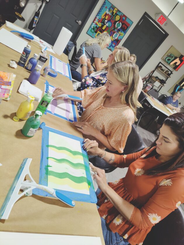 (Photo Provided) Artists trying squeegee painting at the Parkersburg Art Center. A new series of programs will be offered in 2025 for all age ranges.