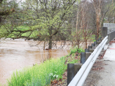 (Photo By Jess Mancini) Worthington Creek below the Worthington Ball Fields was swollen Friday morning after the severe storms that went through the region. More showers are forecast Saturday and Sunday are in the forecast from the National Weather Service.