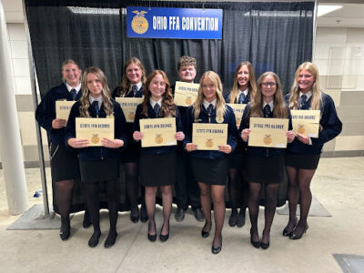 The following members earned the golden charm of the State FFA Degree: Parker Burris, Jaden Cox, Reiley Miller, Paige Morgenstern, Peyton Offenberger, Brookelyn Stottsberry, Faith Treadway, Alexis White, and Christy Willis.