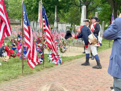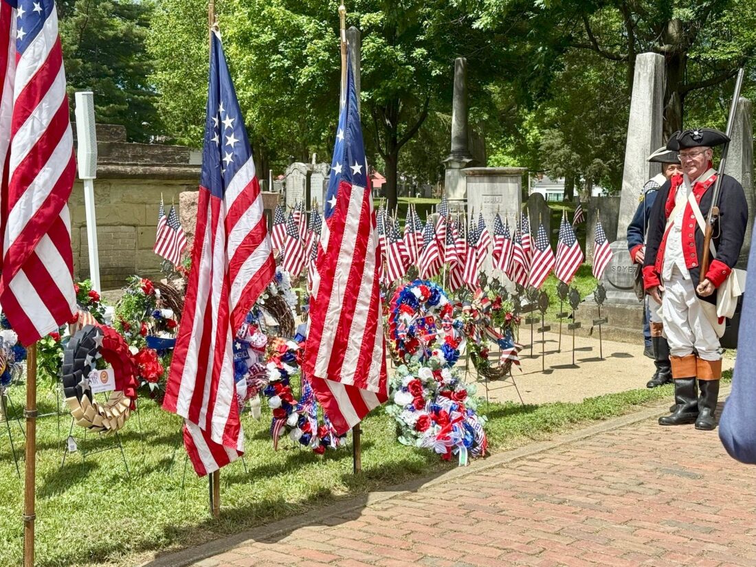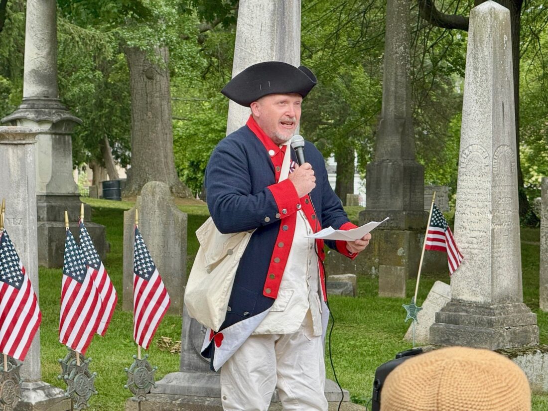 At Mound Cemetery, located on the corner of Fifth and Scammel streets, Marietta Chapter SAR Historian Scott Britton was the keynote speaker for the memorial service.