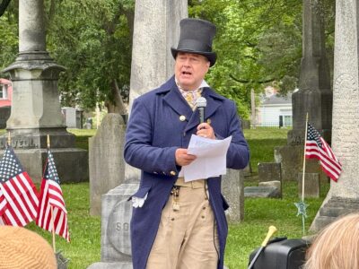 (Photo by Amber Phipps) Guest speaker Lafayette was portrayed by Michael Halbert at the Memorial Service on Friday afternoon. He spoke about the history of Lafayette and how he came to visit Marietta on May 23, 1825.
