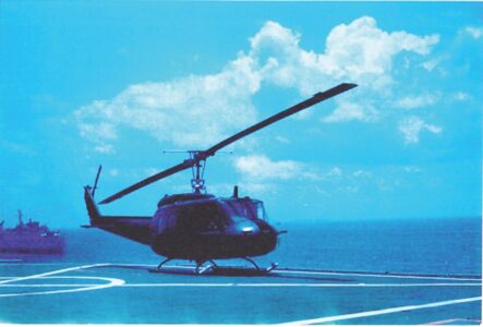 - (Photo provided by Housecalls Hospice) A Chinook helicopter lands on an American naval ship to undergo repairs. Veteran Jerry Smith stated that helicopters were always landing on the ships for engine adjustments and repairs.