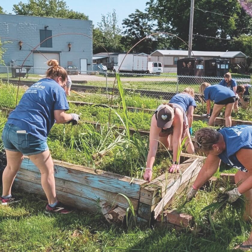 (Photo Provided) A crew with WVU Medicine Camden Clark Medical Center did work Friday in the planting beds at the Washington County Boys and Girls Club in Marietta on Friday as part of the United Way of the Mid-Ohio Valley’s annual Day of Action where volunteers helped out on a number of community service projects.
