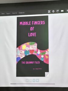 - (Photo by Tristan Hostetter, Special to the Times) Wellsville Local Schools music teacher and artist Lindsay Clifton of Steubenville shows off her book, “Middle Fingers of Love: The Granny Files,” which chronicles a series of vignettes in comic style about a granddaughter’s journey caring for her grandmother. She gave a reading and book signing at the Ursuline Sisters Motherhouse in Canfield on Saturday.