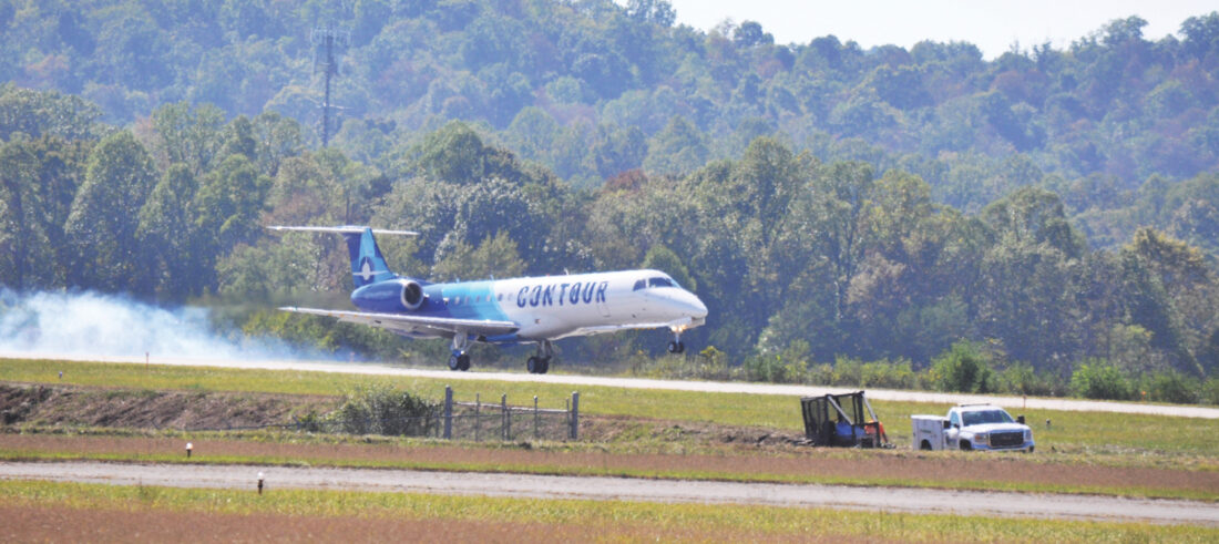 - (File photo) A Contour Airlines jet touches down Oct. 1 at the Mid-Ohio Valley Regional Airport.