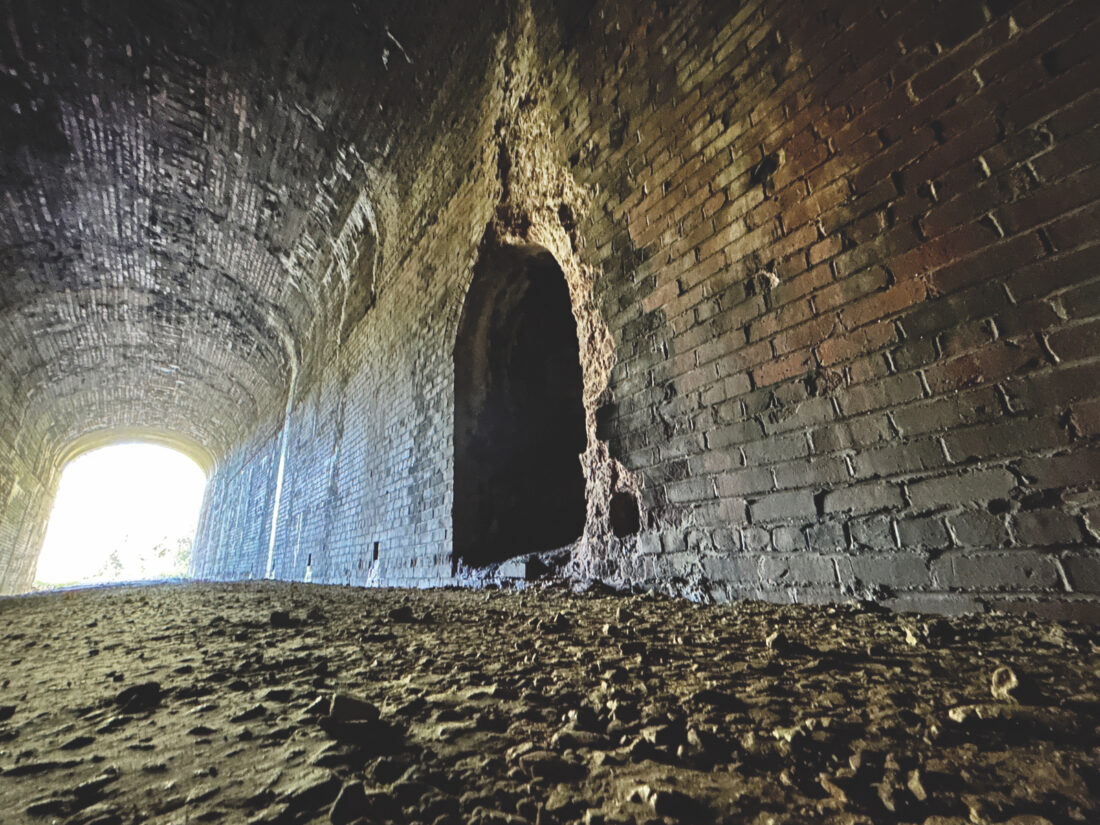 (Photo by Art Smith) Along the walls of the Silver Run Tunnel, the last indicators of the railway are alcoves used to stand out of the way of oncoming trains.