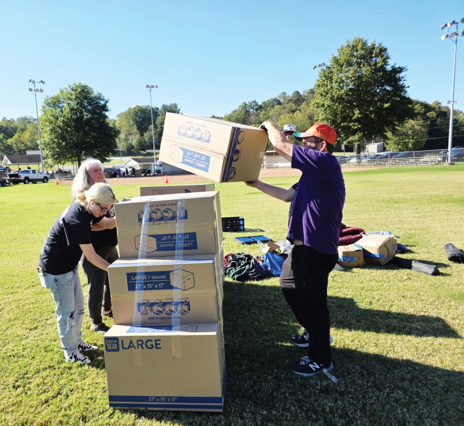 - (Photo by Gwen Sour) From left, Julie White, Rachel Capps and Kevin White build their shelter for the 10th Annual Sleep Out, hosted by The Children’s Home Society of West Virginia.