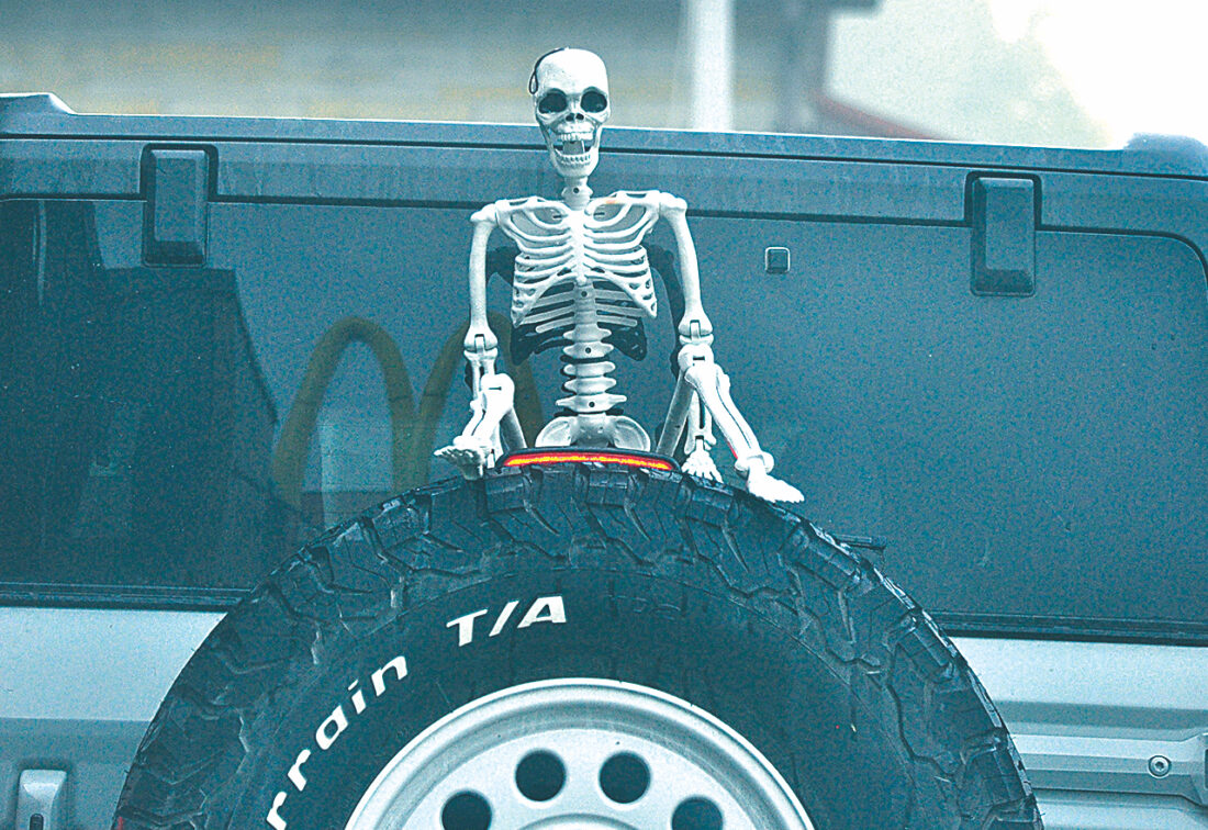 A skeleton hitches a ride on the spare tire of a Ford Bronco as it makes its way through the drive-through of the McConnelsville McDonalds recently. If you have a recent photo that showcases the beauty of the Mid-Ohio Valley, submit it to Art Smith at asmith@mariettatimes.com for possible inclusion on this page. See more photos at Instagram.com/mariettatimes.