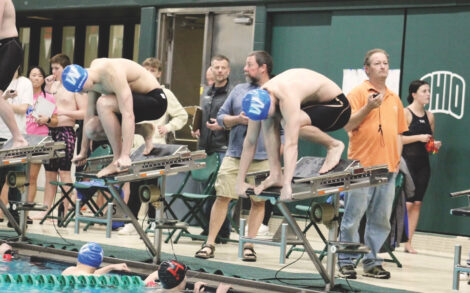 - (Photo by Amber Phipps) John Randall, right, competing in a 50-yard freestyle swim competition with his teammate Mason Francis, left, on Feb. 2.