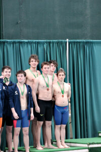(Photo Provided) Members of the Warren boys 200 freestyle relay, which placed fourth at the Ohio Division II district meet in Athens. The relay missed by four-tenths of a second from qualifying for the state meet. Members of the relay are Eli Watkins, Tyler Frye, John Randall and Mason Francis.