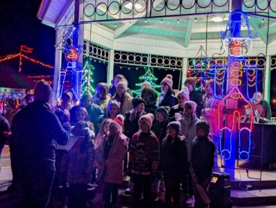 The Belpre Elementary School Choir performs at the gazebo in Civitan Park Friday during the Belpre Christmas tree lighting festivities.