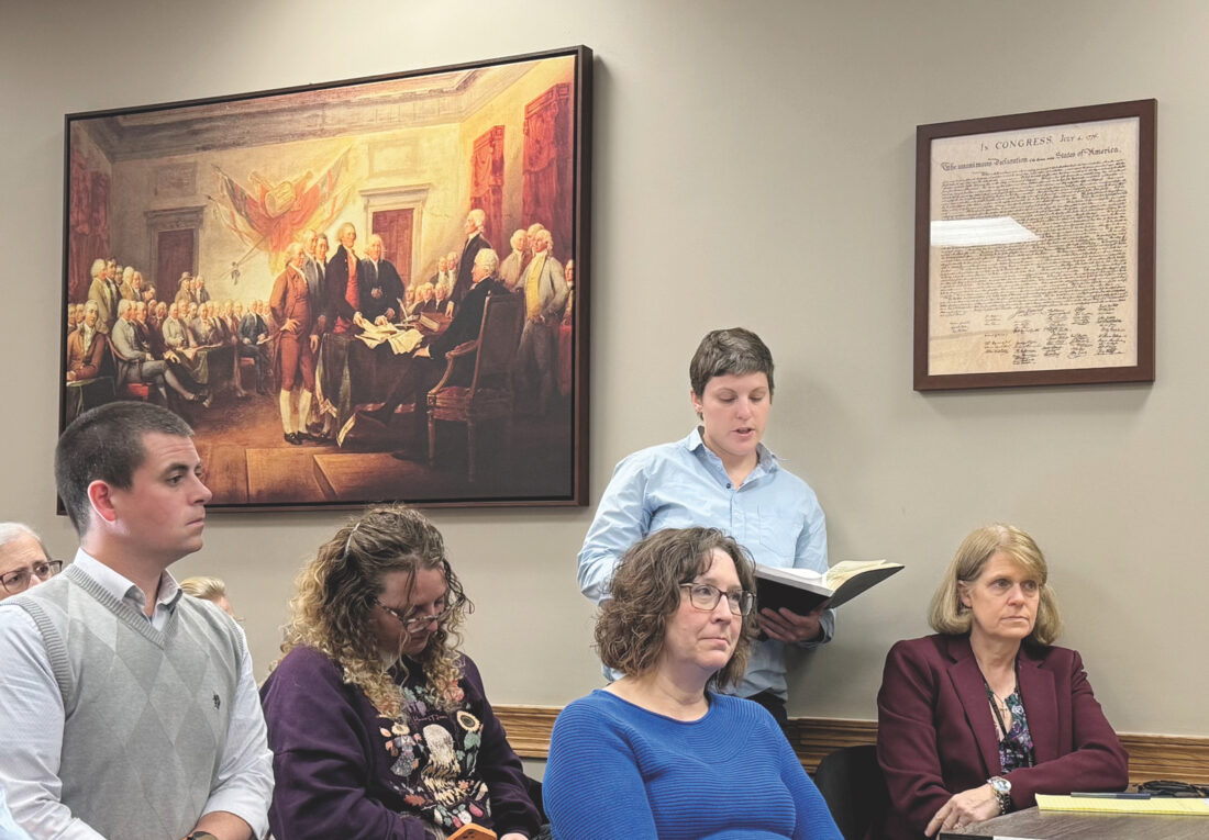 - (Photo by Amber Phipps) Buckeye Environmental Network Appalachian Organizer Bev Reed addressed concerns about Class I and II injection wells in Washington County during the public comment segment of the Washington County Commission meeting Thursday.