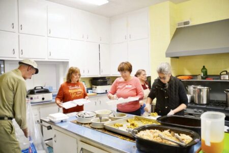 (File Photo) Volunteers at Norwood United Methodist Church in Marietta prepared Thanksgiving meals for the community in 2024 that included ham, turkey, mashed potatoes, stuffing and pumpkin pie.