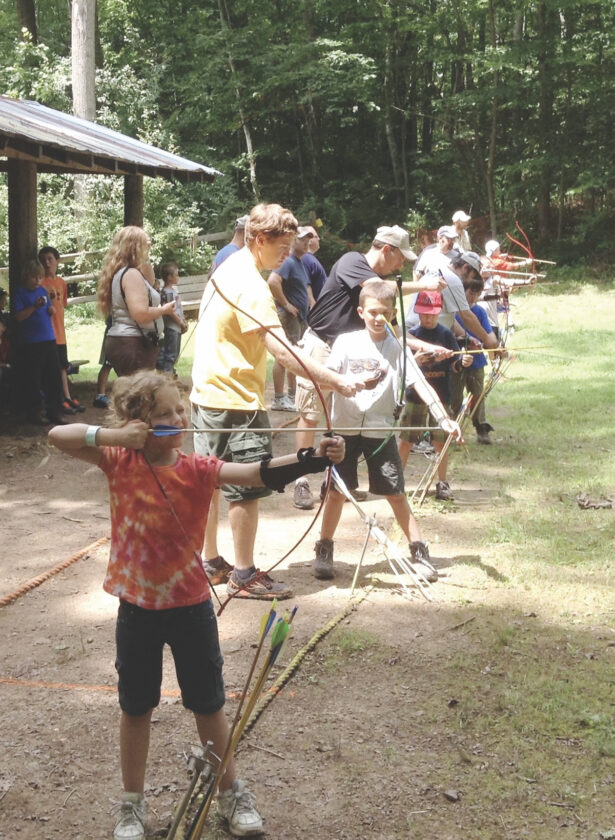 (Photo provided) Riley Curfman, left, aims at a target during Adventure Weekend at Camp Kootaga in July 2014. Curfman, who was 6 at the time, would later go on to receive a perfect score during a sharpshooting competition at the camp in 2024. She said attending camps like this with her brother when she was young led to her future achievements.