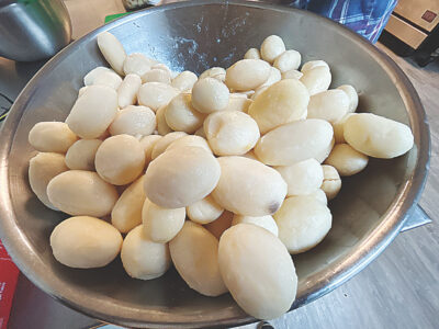 - (Photo by Art Smith) Peeled potatoes for vegetable soup.