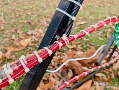 (Photo by Evan Bevin) Some of the approximately 30,000 zip ties used for Holiday in the Park displays in Parkersburg City Park keep lights attached to a frame Saturday.