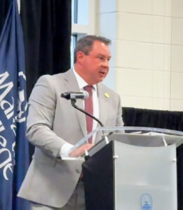 (Photo by Amber Phipps) Ohio Sen. Brian Chavez shares his remarks about the Center for Appalachian Innovation’s formal launch at Marietta College on Monday.