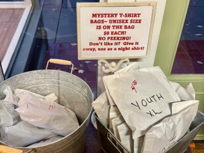 Wit and Whimzy sold mystery unisex T-shirts during First Friday for $8 each.