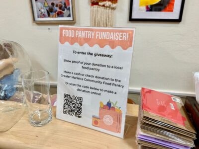 - (Photo by Amber Phipps) Clutch Collective participated in Cheers to Charity which was the theme for November’s First Friday. Cash, check or online donations go to the Greater Marietta Community Food Pantry. The company will also donate 20% of the sales from the day to the food pantry.