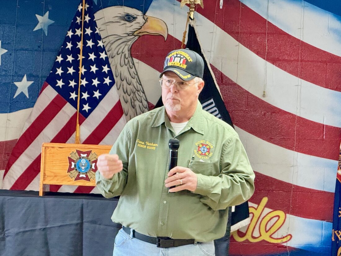 (Photo by Amber Phipps) VFW Post 5108 Commander Gene Venham speaks about the importance of mental health awareness amongst veterans during the Veterans Day luncheon at the VFW Post 5108 on Tuesday.