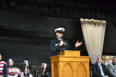 Lt. Col. Alex Cantu, Parkersburg South High School JROTC senior instructor and veteran, attended the annual Williamstown High School Veterans Day Assembly on Friday.