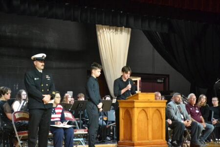 The Williamstown Middle/High School Choir performs “God Bless America” Friday during the school’s annual Veterans Day Assembly.