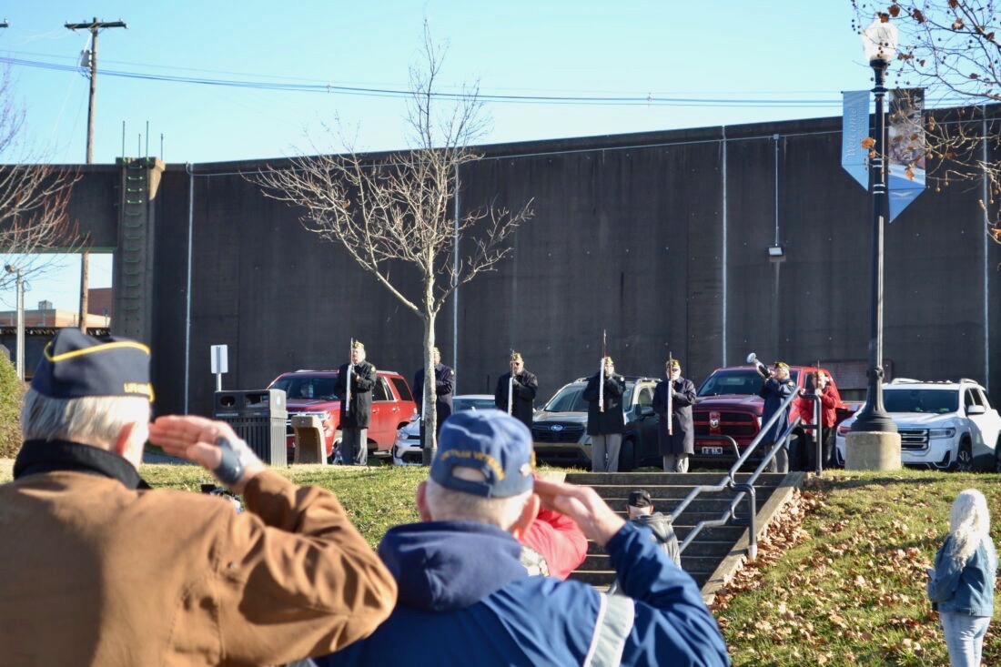 - (File Photo) A group of veterans forming an Honor Guard performed a 21-gun salute and “Taps” was played during a Pearl Harbor observance at Point Park in 2023.