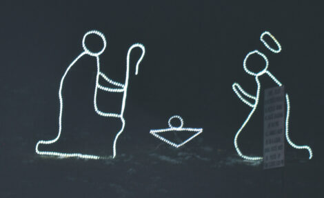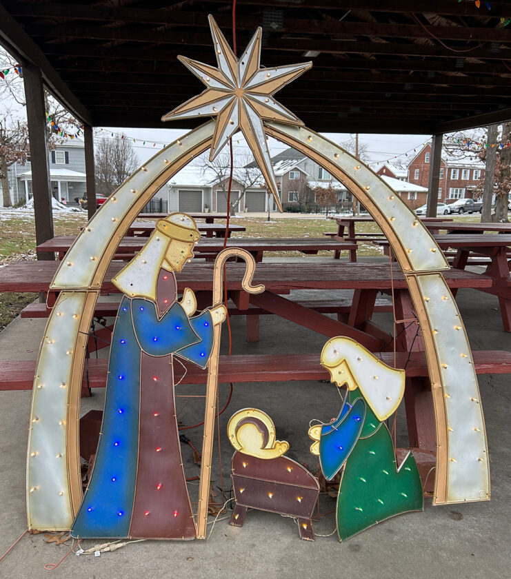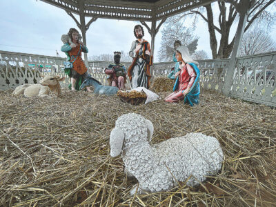 - (Photo by Art Smith) A nativity scene among the lights at Cisler Terrace Park on Ephraim Cutler Street in Marietta.