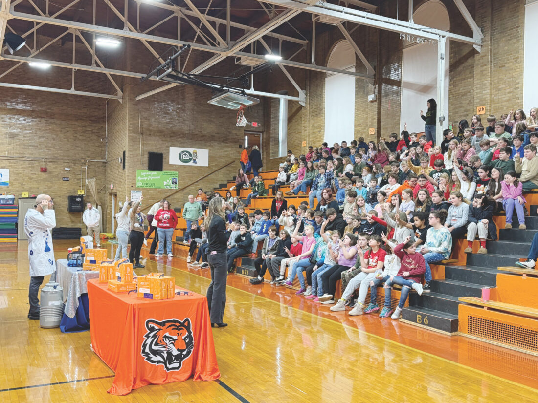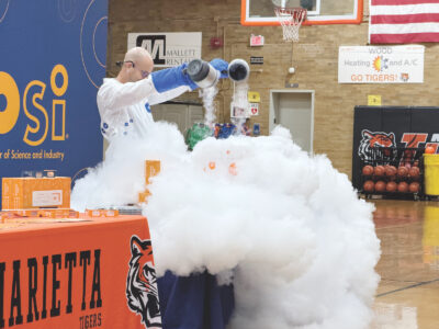 Fifth and sixth grade students at Marietta Elementary School were paid a visit from COSI with a science experiment demonstration Friday morning.