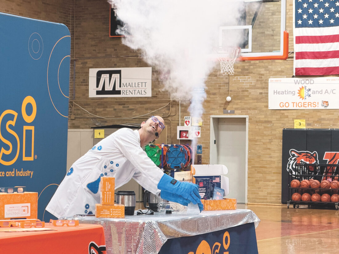 The demonstration, presented by COSI Director of Offsite Education Kevin Seymour, mixed liquid solutions to create gas which elicited excited reactions from the students.