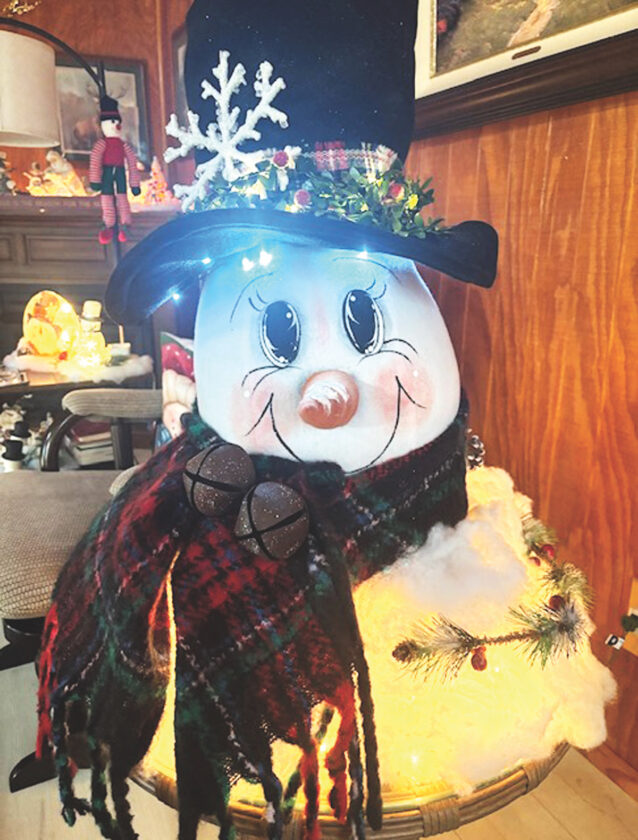 - (Photo Provided) A snowman is predominantly displayed at the home of Debbie and J.B. Campbell, 584 Blenn Lake Road, Blennerhassett Heights, one of nine stops on the Woman’s Club Holly Trail this year.