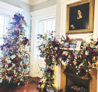Oakland Mansion, the home of the WVU Parkersburg Foundation, was decorated by designer Keith McClung, owner of Crown Floral & Gifts. Built in 1832 by James McNeil Stephenson, a lawyer, banker and politician, the house was named for the oak trees that covered the 6-acre estate. In 2015, Stephenson’s great-great-grandson and wife gave the home to the foundation. Years were spent renovating the structure and upgrading the furnishings. The mansion has been on the National Register of Historic Places since 1975.