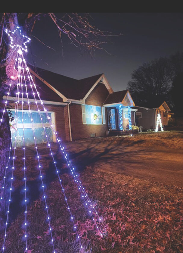 - (Photo Provided) A distant view of Patsy and Tim Buckles-Martin’s home at 806 47th St., Vienna, is framed by the Christmas tree of blue lights. The display is on the itinerary of the 2025 Holly Trail sponsored by the Parkersburg Woman’s Club.