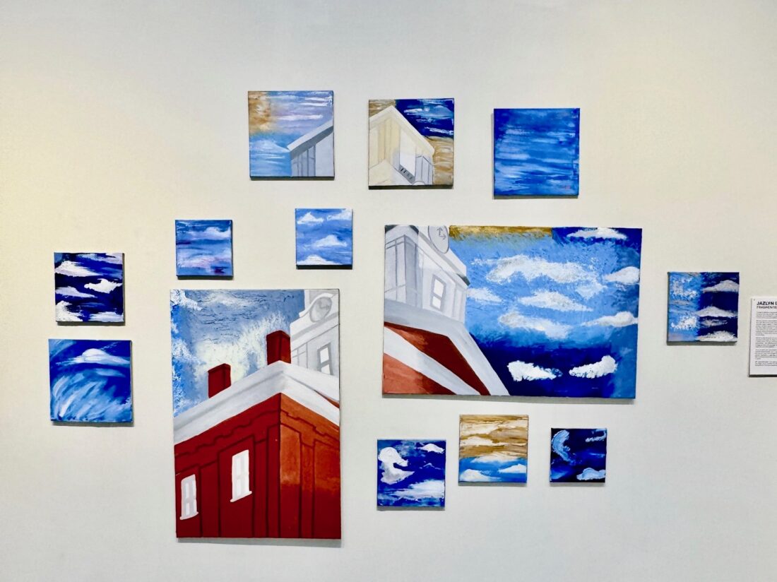 - (Photo Provided) Jazlyn Ingold’s piece “Fragmented Skies” is displayed in the Art and Design Capstone Exhibition at Marietta College.