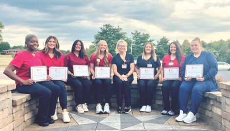 - (Photo provided) Hayleigh Chidester, fourth from left, is pictured at her state-tested nursing assistant graduation at the Washington County Career Center.