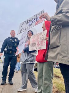 A woman at the Marietta protest who identified herself as “Renee” said she was there as a result of outrage over the injustice as she feels ICE is violating people’s rights with a presidential administration that allows it . She attended both the Vienna and Marietta protests.