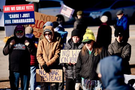 - Protesters rally in front of the Ohio Statehouse in Columbus, Ohio, on Sunday, Jan. 4, 2026, after the U.S. captured Venezuelan President Nicolás Maduro and his wife in a military operation. (AP Photo/Jessica Phelps)