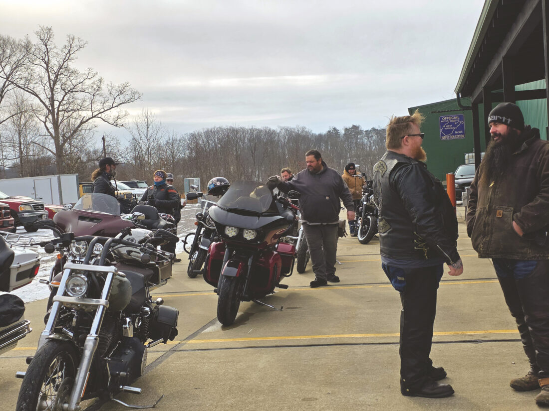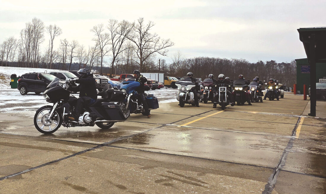 (Photo by Gwen Sour) Bikers from Mothman Harley-Davidson in Williamstown prepare to take off Saturday for the first Polar Bear Ride.