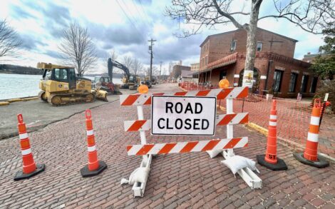- (Photo by Art Smith) A road closed sign on Ohio Street will be in place while phase one of construction is underway for the levee project in Marietta.