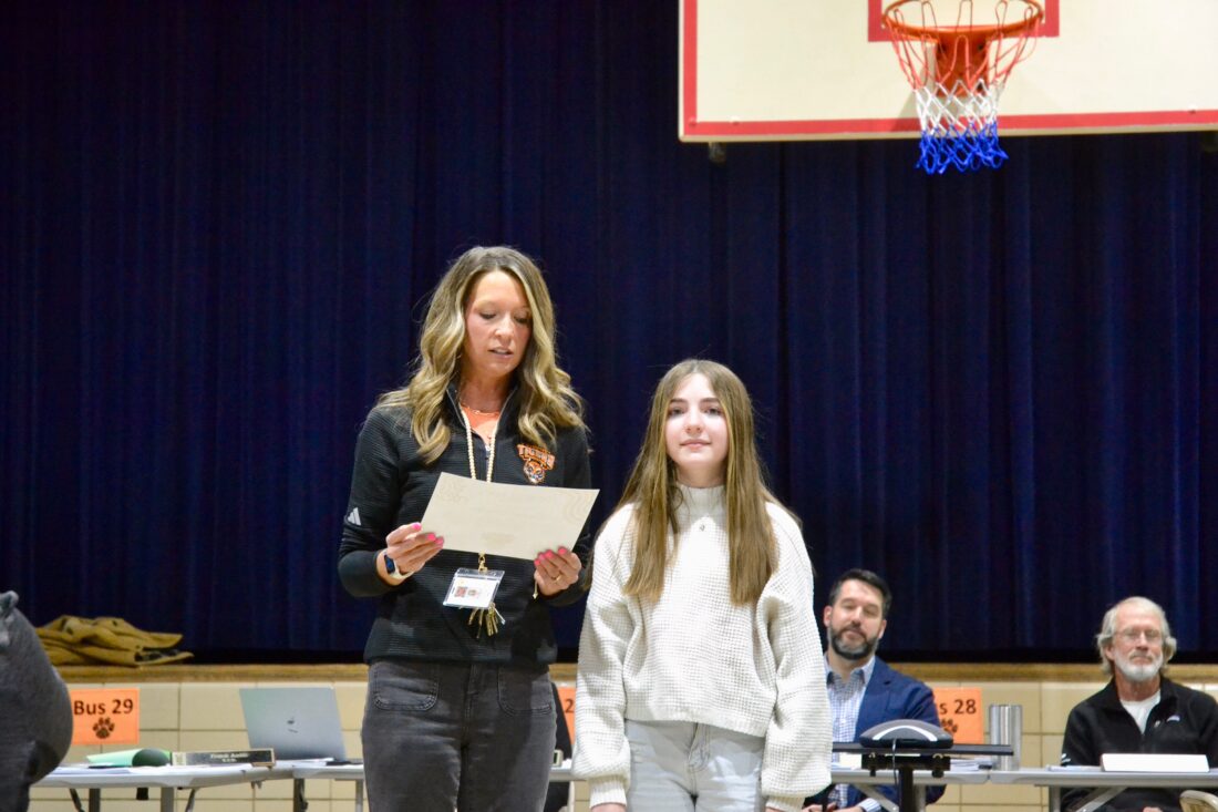 Schob told the board about an incident where Swaney appropriately alerted a teacher when a fellow classmate was going through a difficult time, ensuring they received the support that was needed.