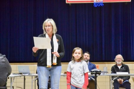 (Photos by Douglass Huxley) Marietta Elementary sixth-grader Raegan Swaney was presented with the district’s new Focused and Fierce Award Thursday night by Principal Brittany Schob during the Marietta City Schools Board of Education meeting.