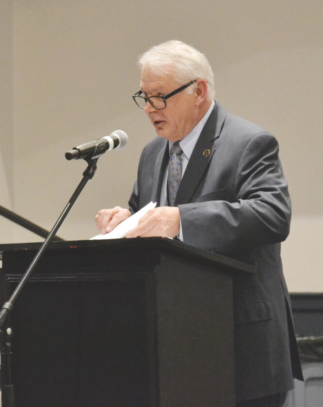 (Photo by Douglass Huxley) Chris Rutherford, director of attendance and home services, talks to the Wood County Board of Education Tuesday night about attendance policy changes in the district. He said one major change increases the length of time a student can be out sick before extra verification is needed.